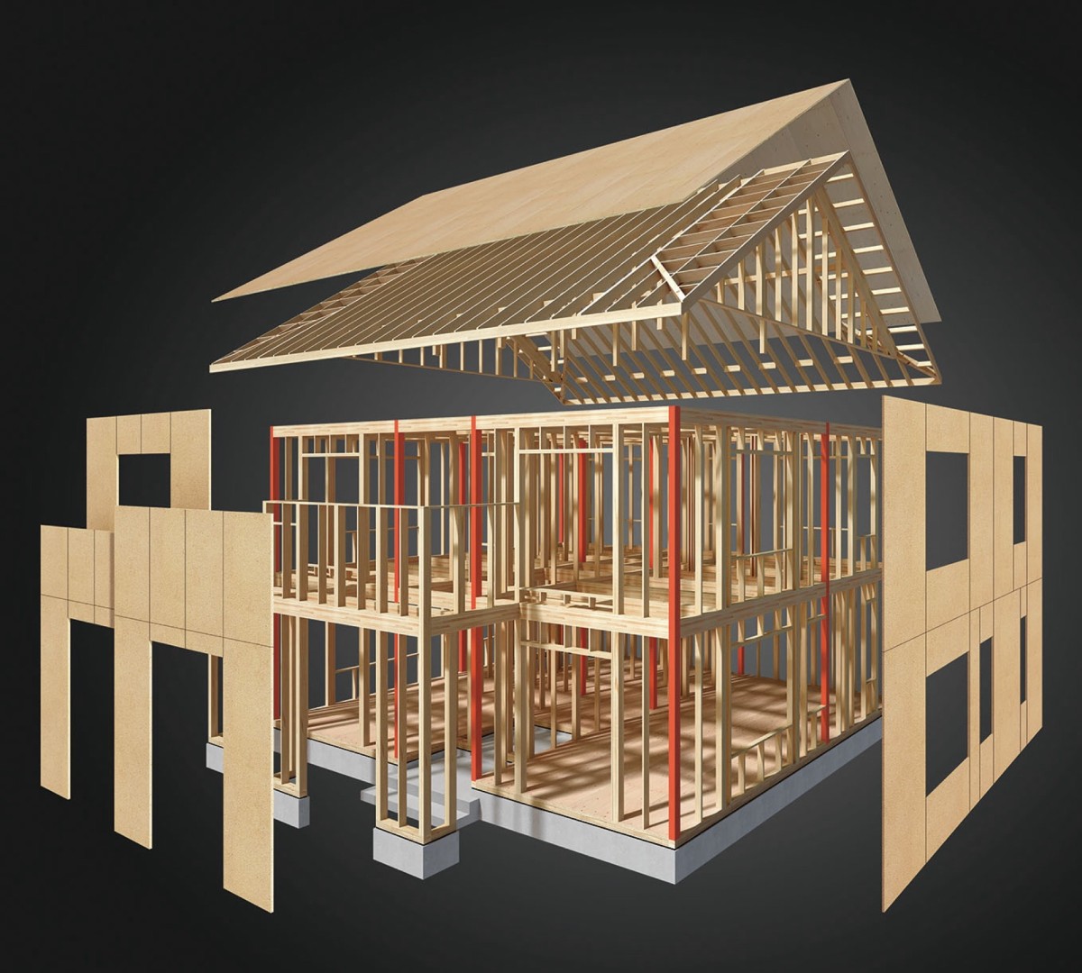 家の骨格となる構造には、1階から2階までを貫く「通し柱」を多用し、建物の揺れに対する強度を高めました。