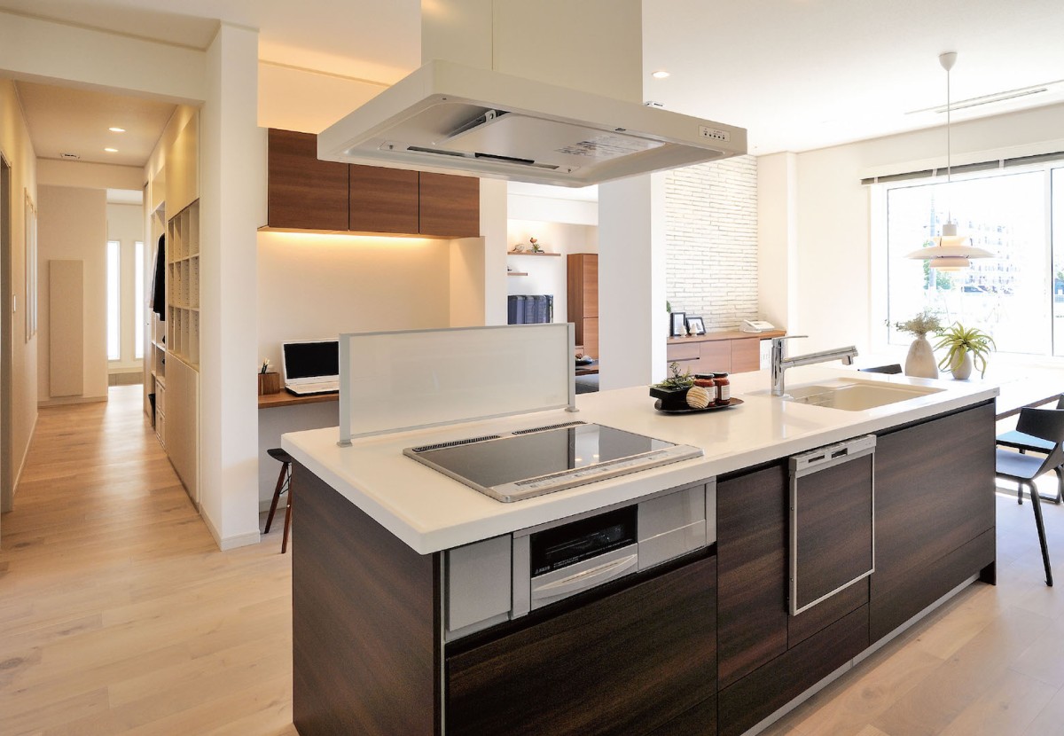お料理をしている時でも、リビングにいるお子様の様子が自然と目に入る「オープンキッチン」は、子育て世代に大人気の間取りです。