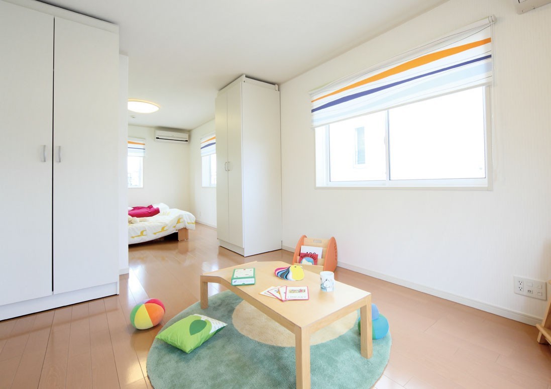 初めは広い一部屋として使い、お子様が成長したら可動式の間仕切りや壁を設置して二部屋に分ける。