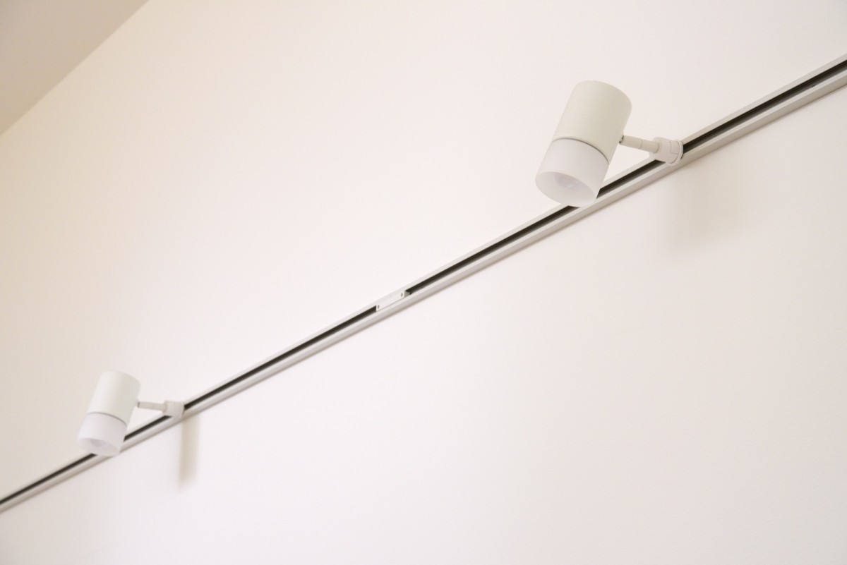 照明計画にこだわると、部屋の雰囲気は大きく変わります。特におすすめなのが、壁の上部や天井に取り付けたレール上で照明の位置を自由に動かせる「ライティングレール」。これなら、将来レイアウトを変えた際も、それに合わせて柔軟に照明位置を調整できます。