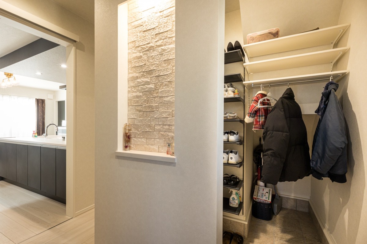 ご主人:私は、玄関の「ただいま動線」が気に入っています。モデルハウスを見て「いいな」と思っていたハンガーポールを玄関土間に取り入れてもらいました。帰宅して玄関でコートをかけ、そのあと洗面台で手を洗ってからリビングに入る動線は、今の時代にも合っていると思いますし、実際とても便利です。